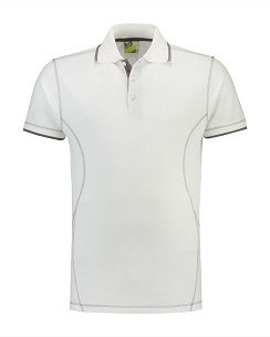 Lemon & Soda unisex polo met korte mouwen. De flatlock stiksels, de binnenzijde van de knoopsluiting en de tipping in de kraag hebben een contrastkleur wat de polo een sportief uiterlijk geeft.
