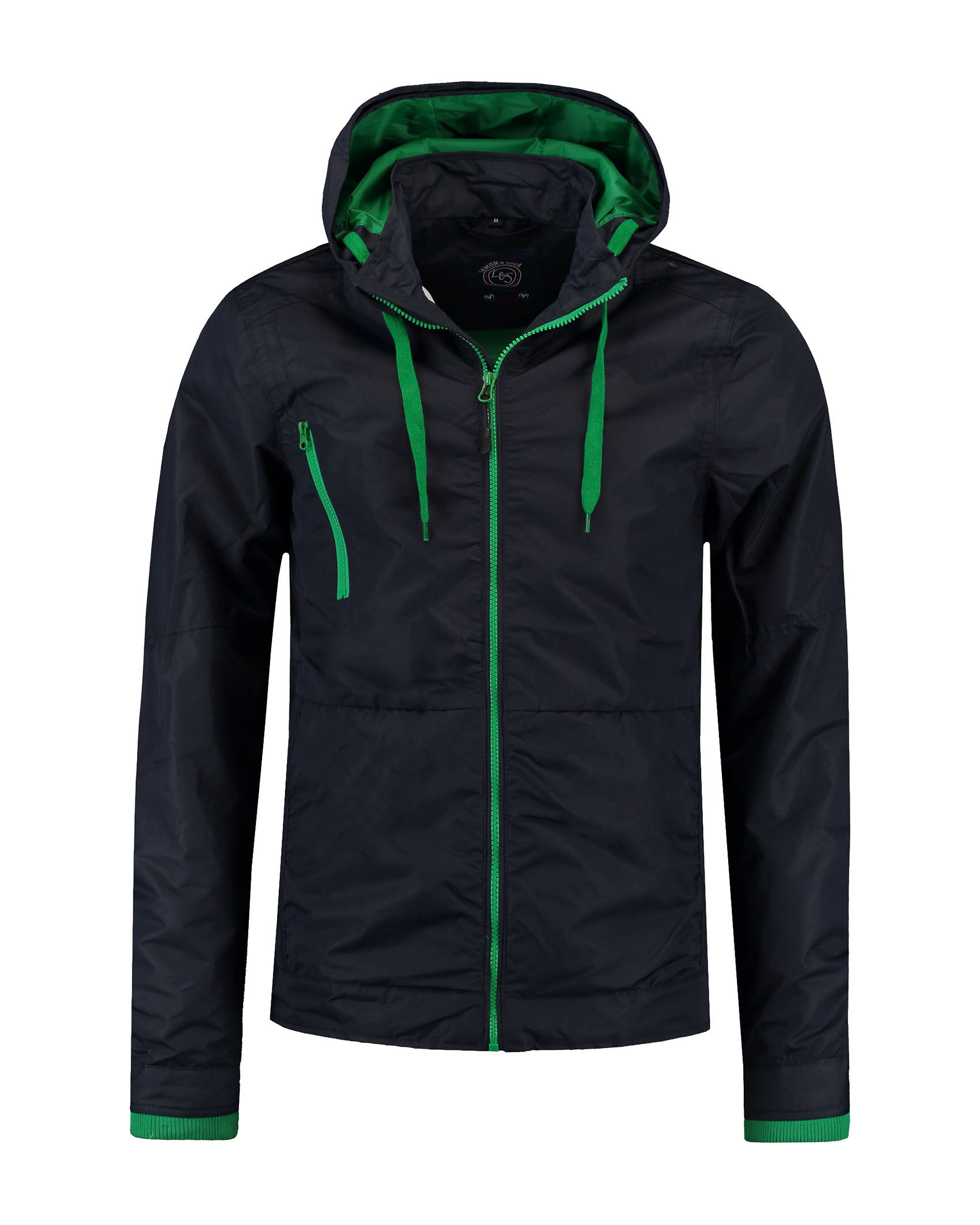 Lemon & Soda unisex jas met capuchon en contrast details gemaakt van polyester taslan, winddicht en waterafstotend. Aan de binnenzijde heeft de jas een zakje om een telefoon op te bergen. Door de drukkersrits is de jas uitstekend te bedrukken of te borduren en hierdoor in te zetten als gepersonaliseerde promotiekleding of bedrijfskleding.