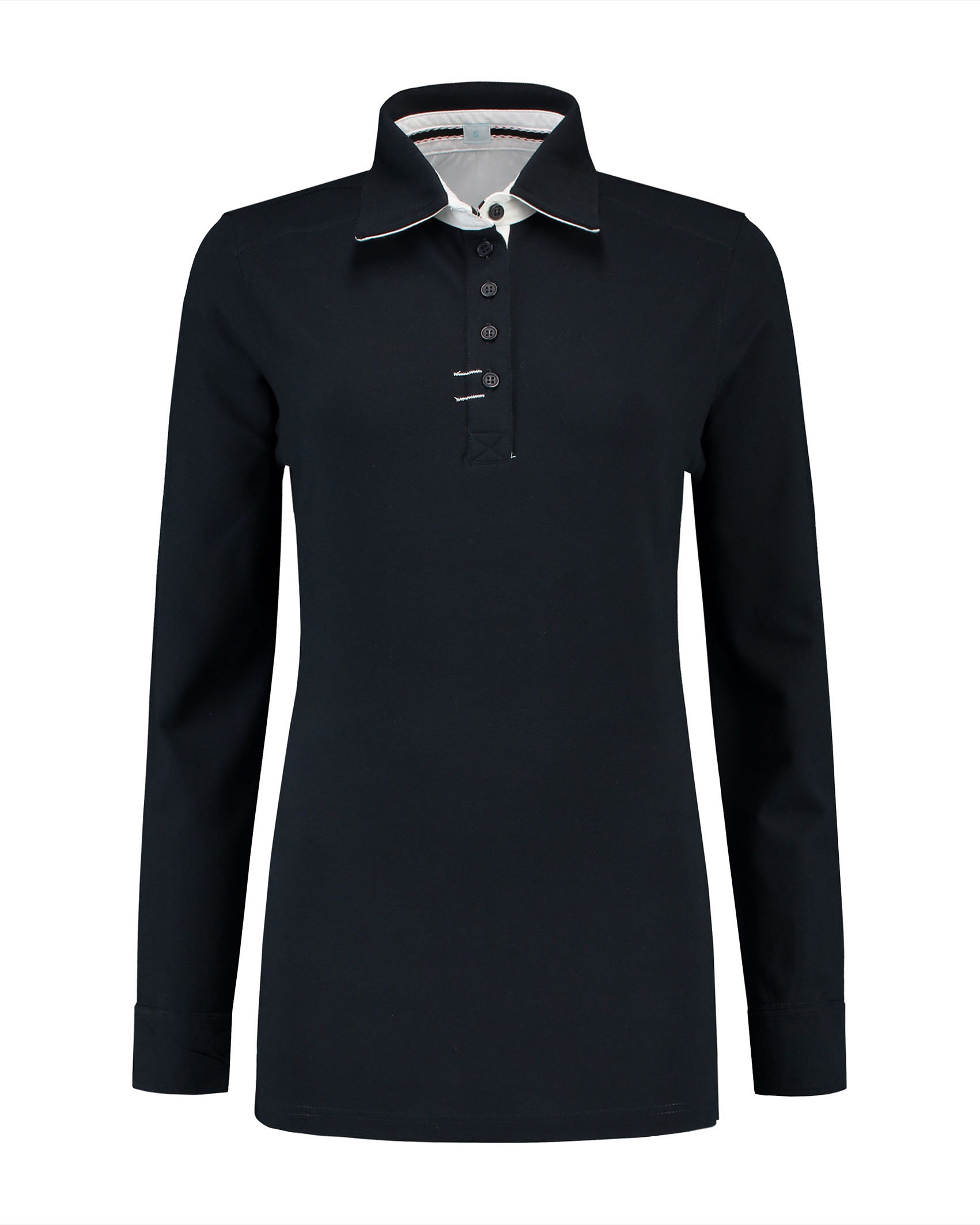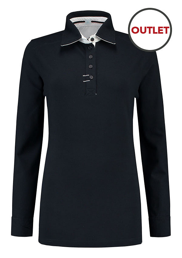 Lemon & Soda polo voor dames met lange mouwen.Comfortabel dankzij de langere lengte, aansluitende pasvorm en de pique in een katoen met elastaan kwaliteit, De polo is verkrijgbaar in mooie basis kleuren met wit contrast en is perfect te bedrukken of te borduren.