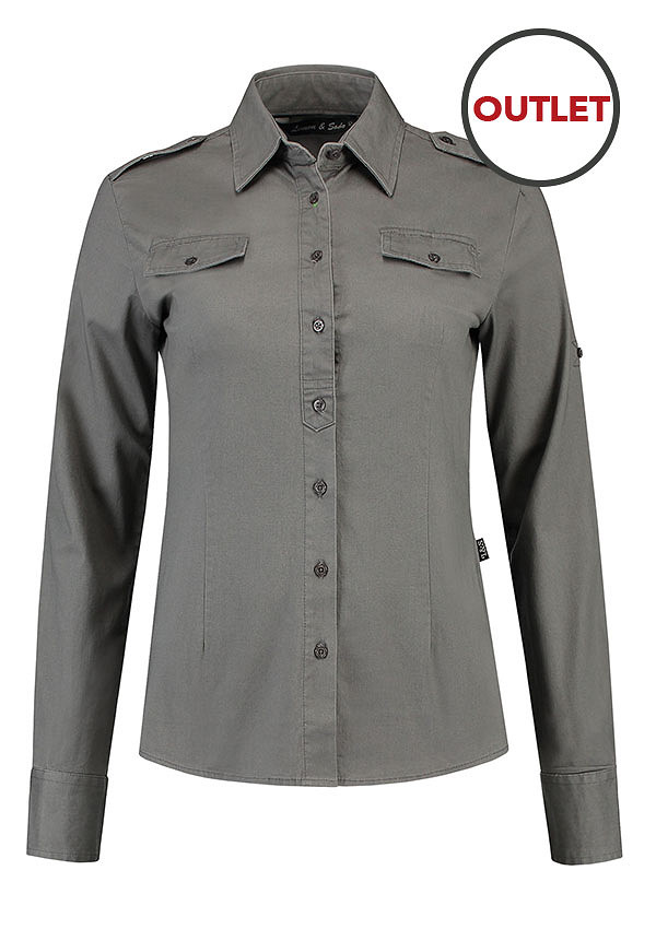 Lemon & Soda dames blouse in een twill kwaliteit. De blouse heeft mouwophouders, epauletten en twee borstzakken. De blouse is verkrijgbaar in meerdere kleuren. Om de blouse te personaliseren kan er gebruik worden gemaakt van een bedrukking of borduring.