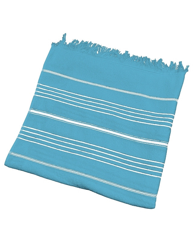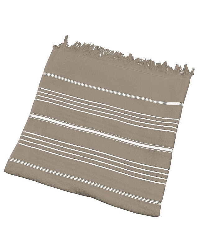 De Olima lichtgewicht hammam-/strandhanddoek van 300 gr/m² is gemaakt van zacht katoen met stijlvolle polyester strepen. Dankzij de combinatie van een badstofzijde en een gladde zijde biedt deze handdoek zowel comfort als functionaliteit. Ideaal voor op reis door het compacte formaat en de goede vochtopname. Bovendien is de handdoek OEKO-TEX® gecertificeerd en geschikt voor diverse toepassingen zoals strand, sauna of wellness.